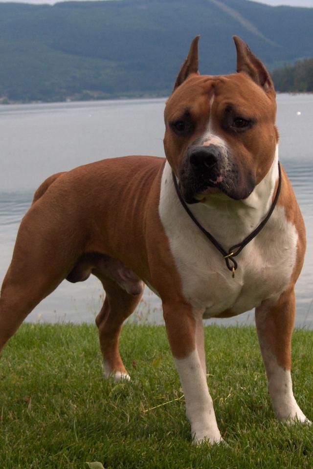 » Обои Стаффордширский бультерьер на озере