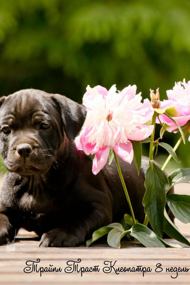 Обои Стаффордширский бультерьер с цветами