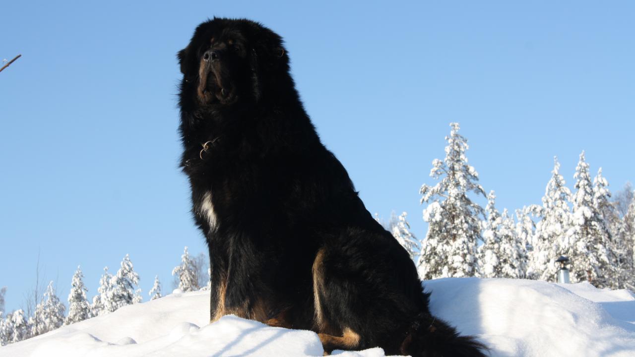 Обои Черный Тибетский мастиф на горе