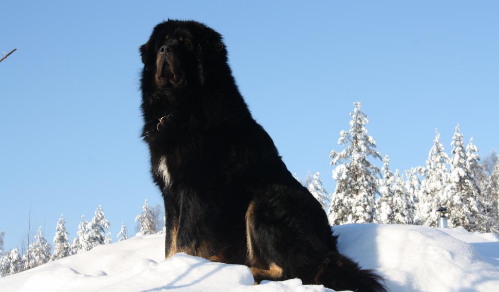 Обои Черный Тибетский мастиф на горе