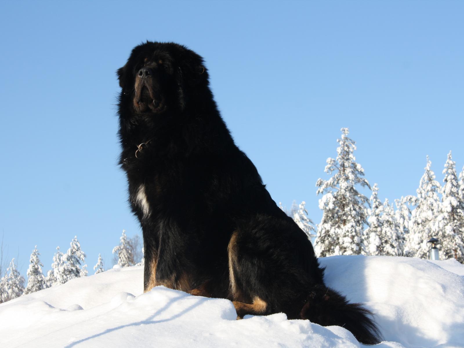 Обои Черный Тибетский мастиф на горе
