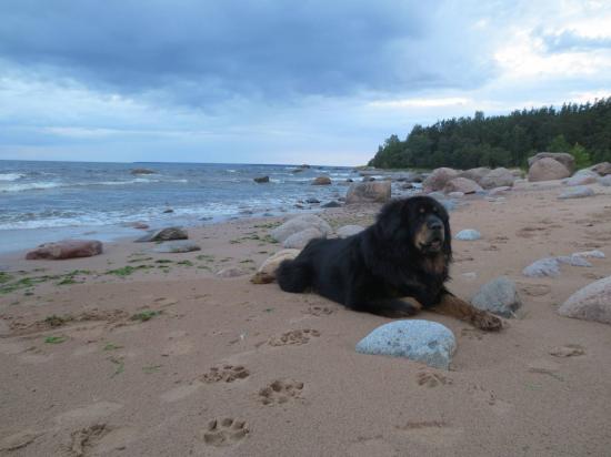 Обои Тибетский мастиф на пляже