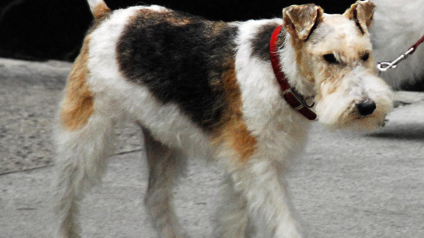 Обои Щенок Фокстерьер идет по улице