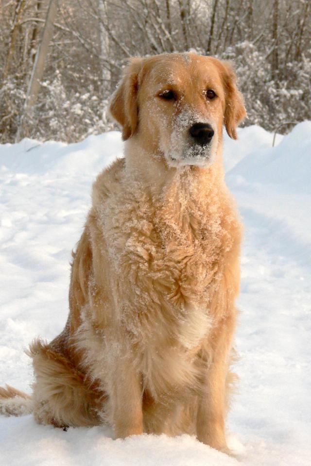 Обои Золотой терьер в снегу