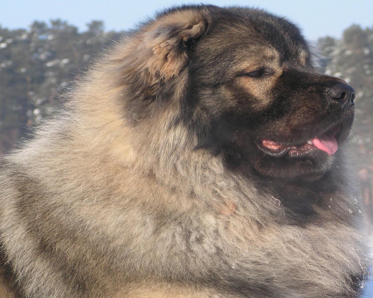 Обои Кавказская овчарка в зимнем лесу