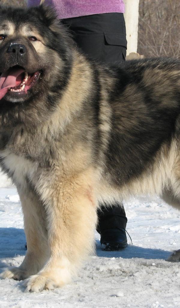 Обои Огромная Кавказская овчарка на снегу