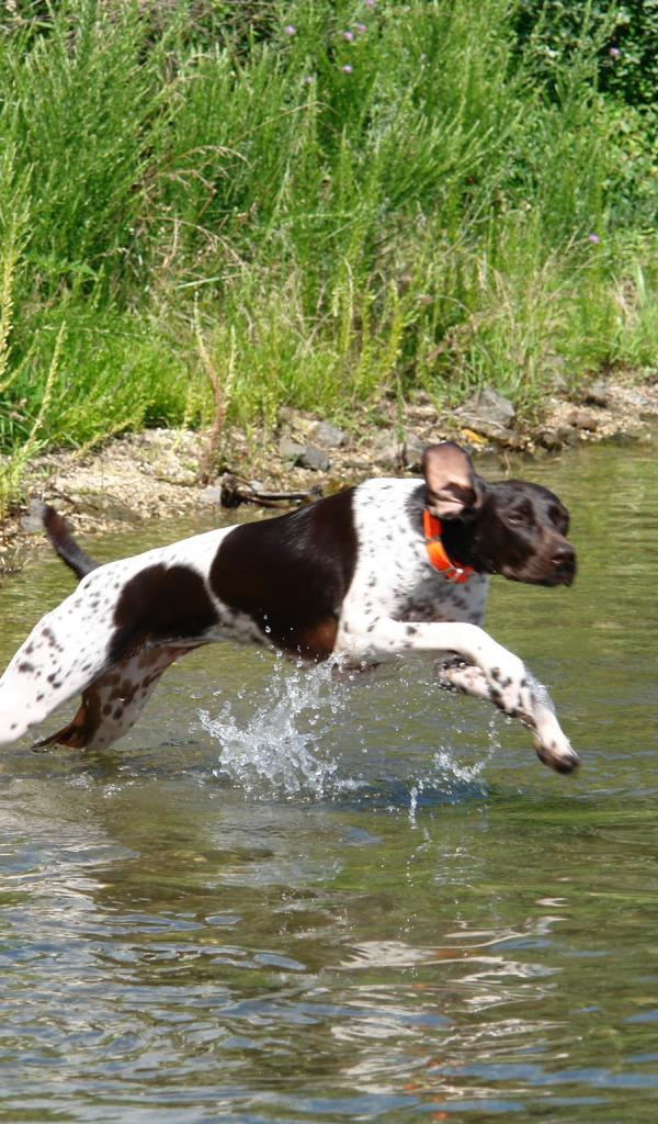Обои Пойнтер пересекает реку