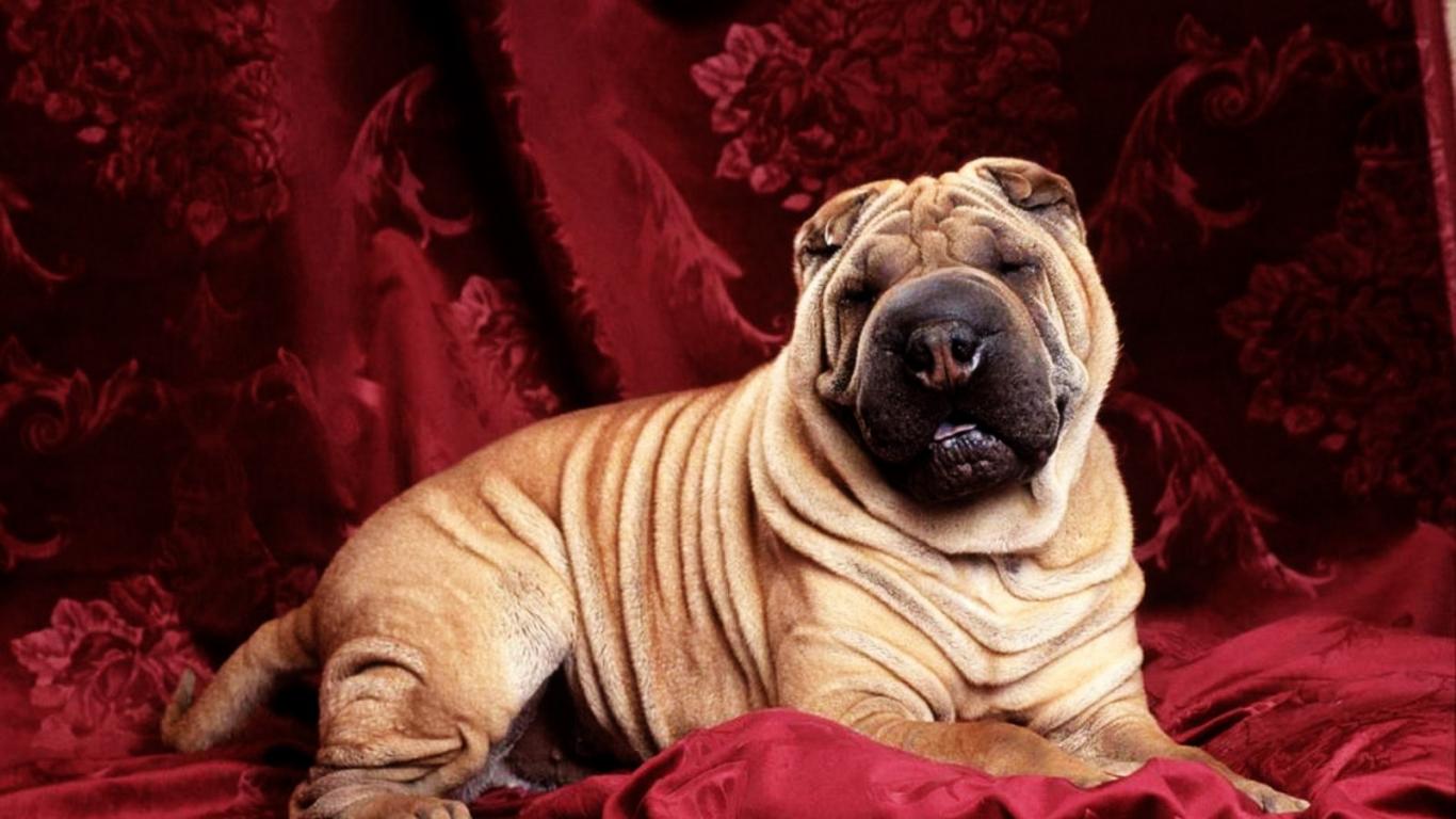 Обои Симпатичный шарпей на красном фоне