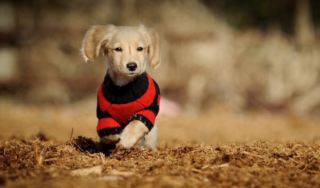 Обои Собака в вязаной одежде