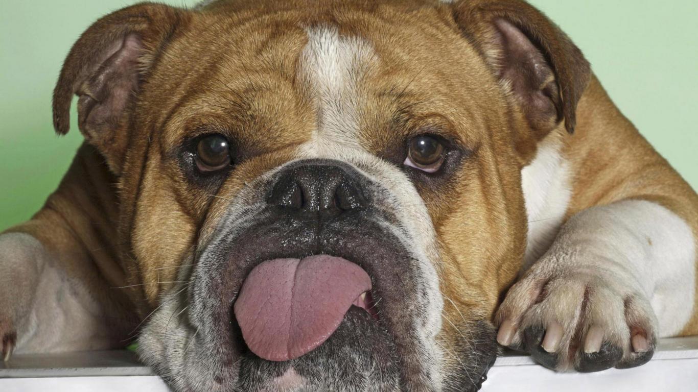 Обои Бульдог показывает язык