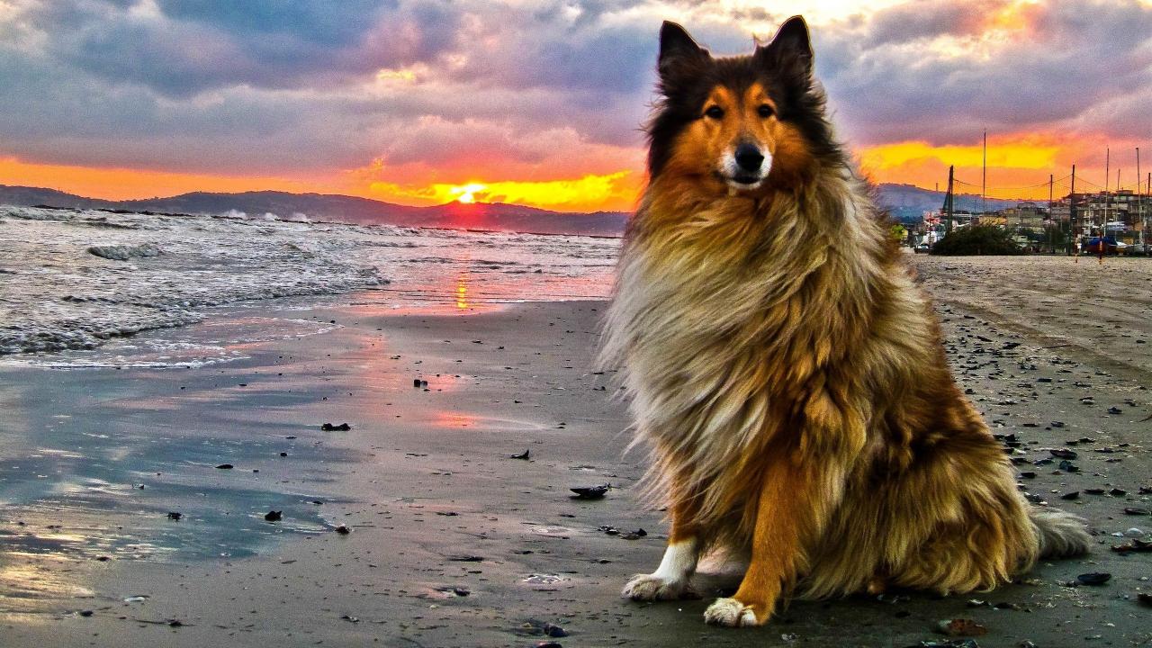 Обои Колли на пляже