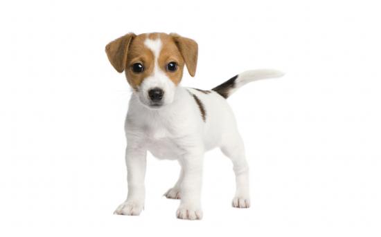 Обои Забавный щенок на белом фоне