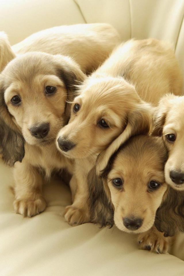 Обои Белые щенки на диване
