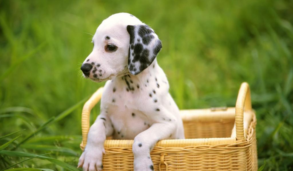 Обои Далматинец в корзинке