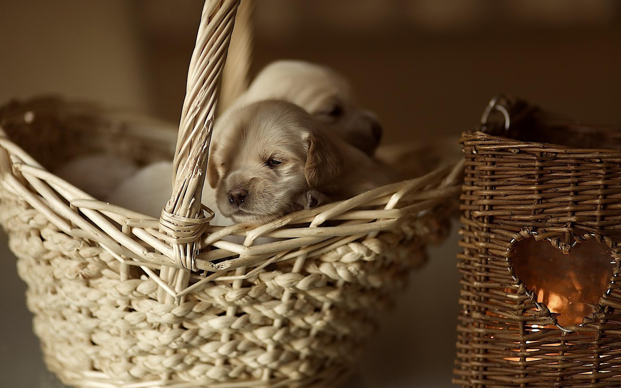 Обои Щенки в корзине