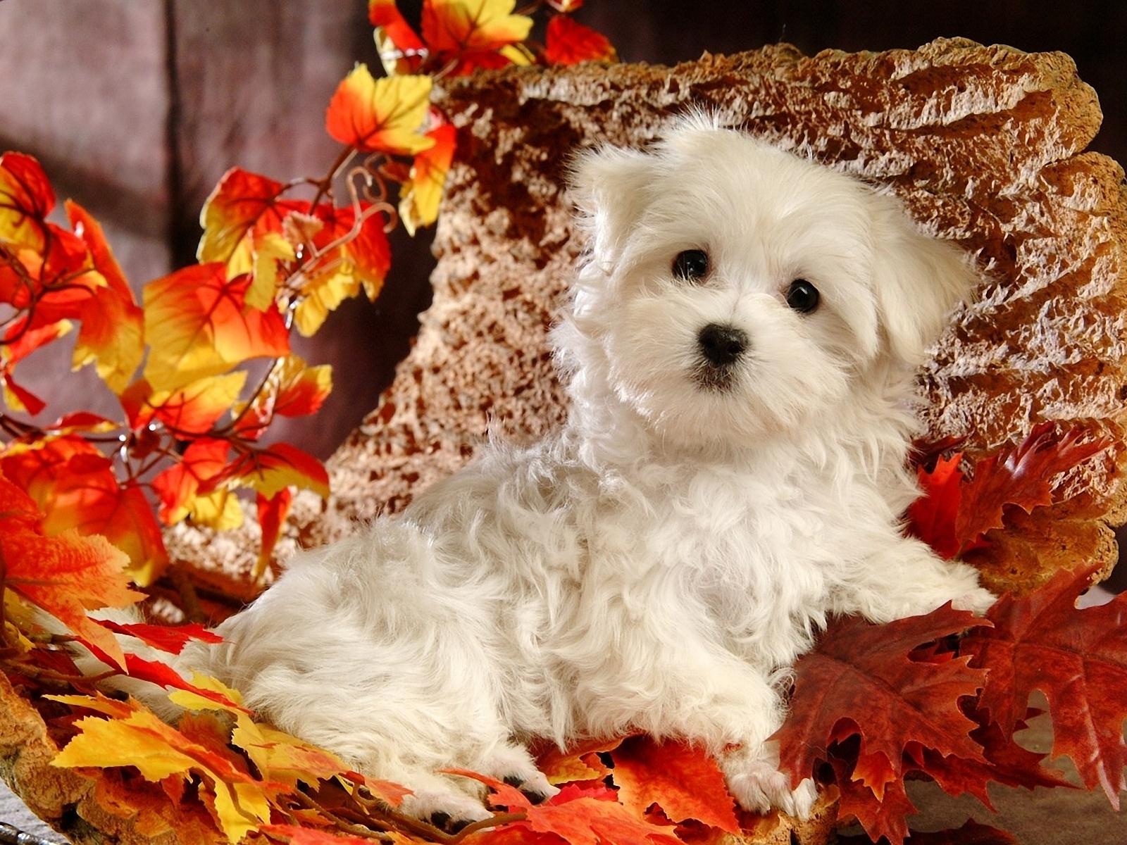 Обои Белый щенок