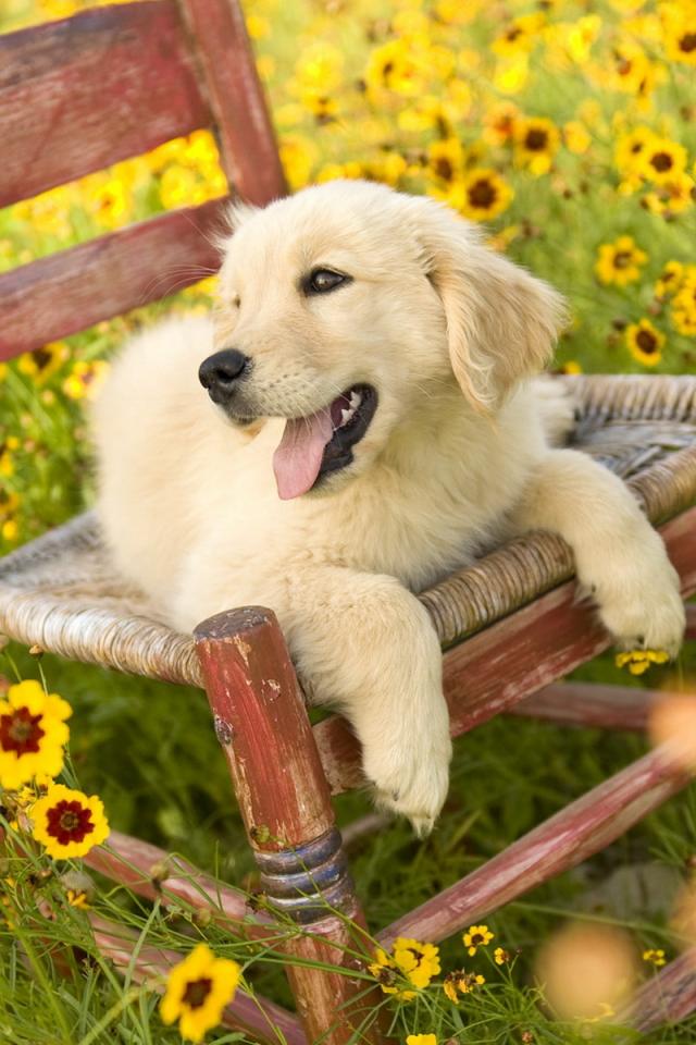 Обои Щенок на стуле