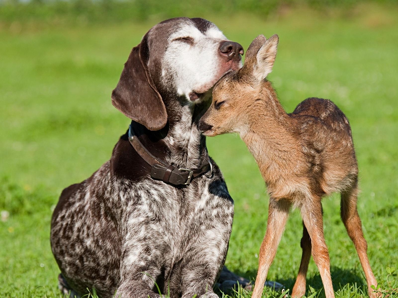 Обои Собака и олененок
