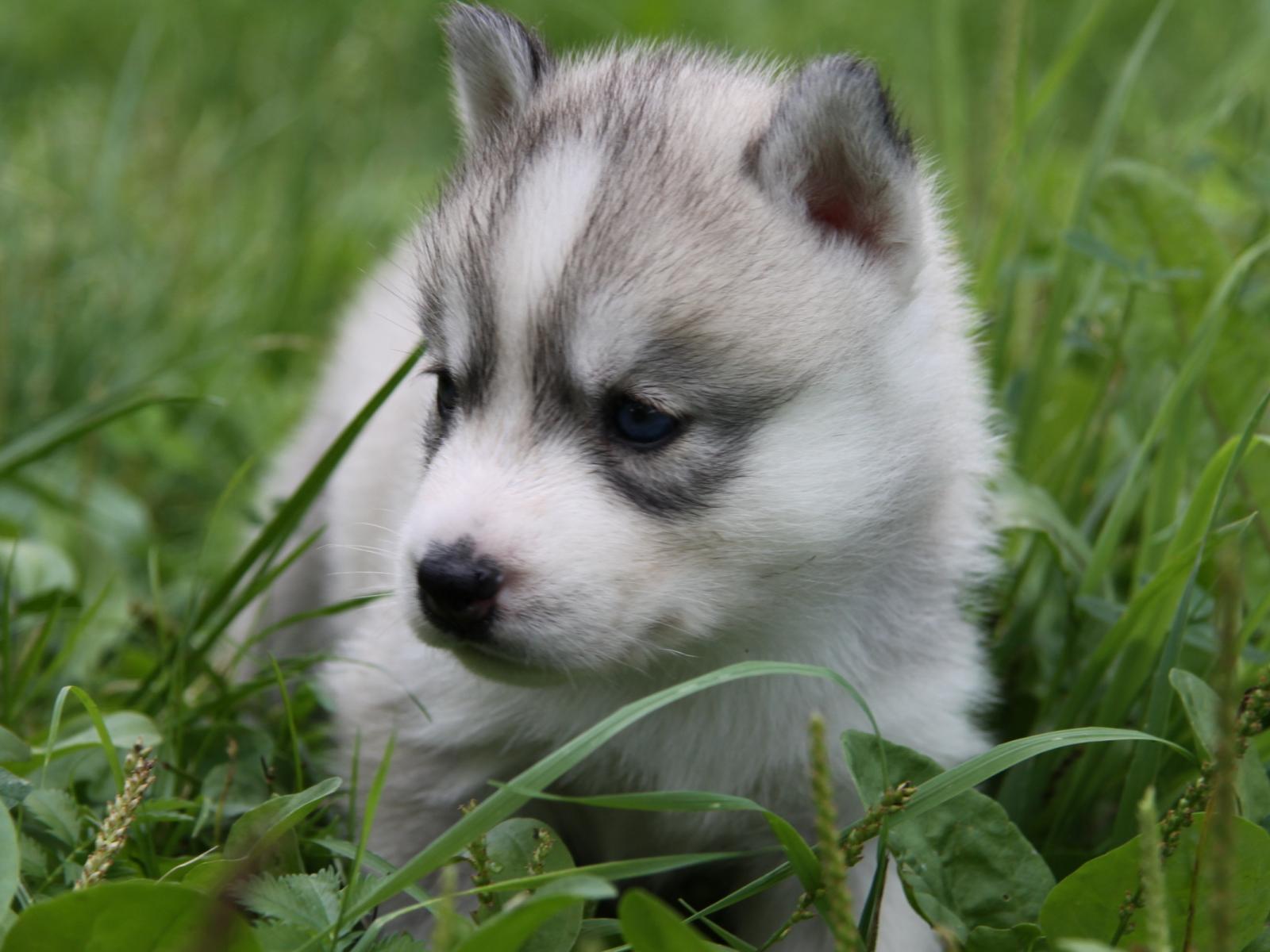Обои щенок в траве