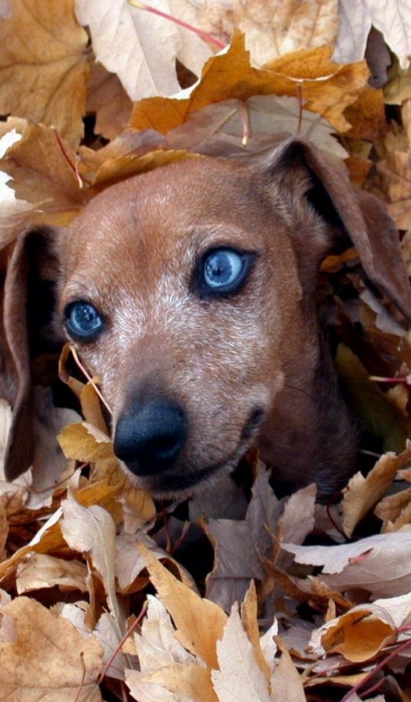 Обои Такса в листве