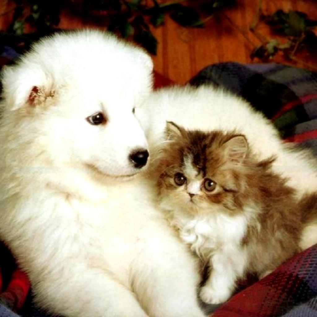 Обои Щенок и котенок