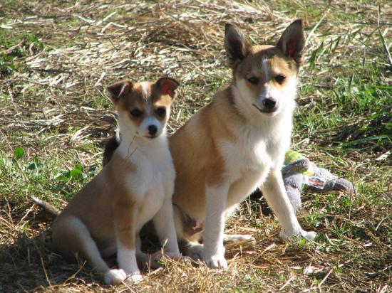 Обои Мама норвежский лундехунд с щенком