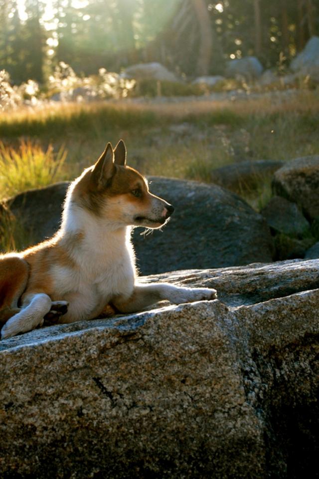 Обои Норвежский лундехунд на камне