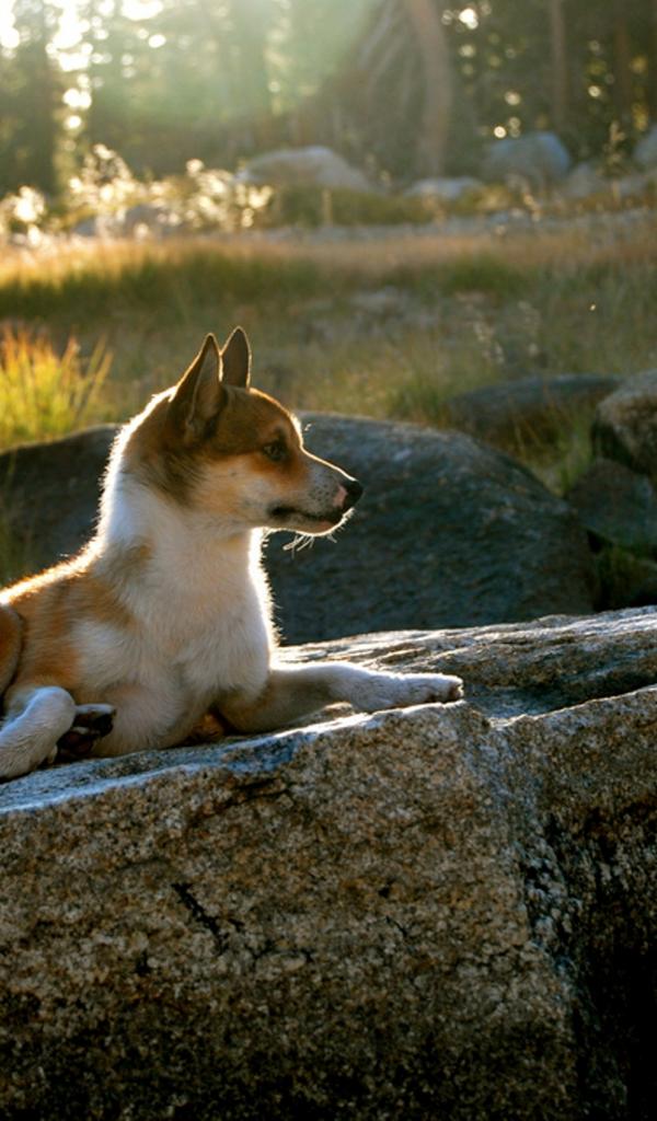 Обои Норвежский лундехунд на камне