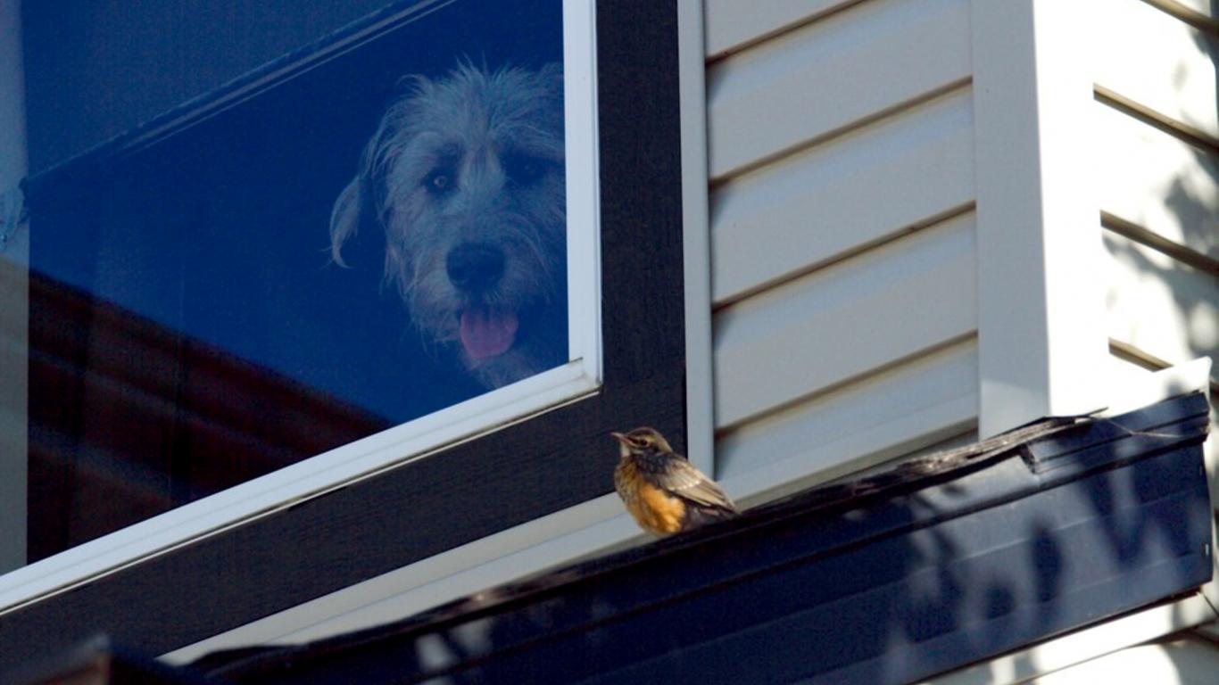 Обои Ирландский волкодав смотрит из окна
