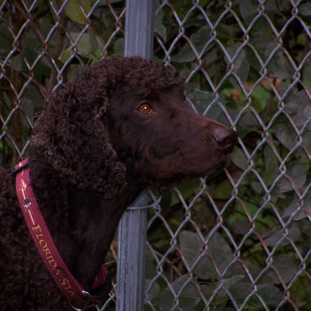 Обои Ирландский водяной спаниель у забора
