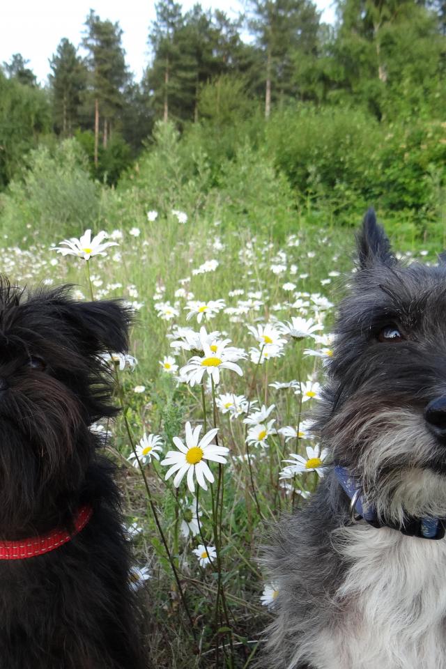 » Обои Аффенпинчеры среди ромашек
