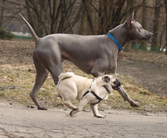 Обои Тайский риджбек наперегонки с мопсом