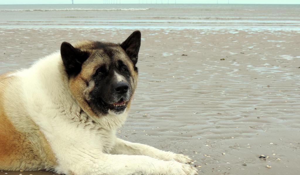 Обои Прогулка американской акиты у моря