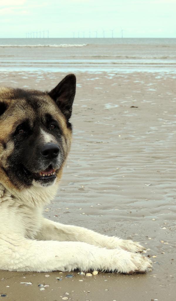 Обои Прогулка американской акиты у моря