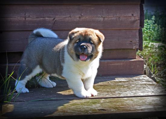 Обои Американская акита показывает язык