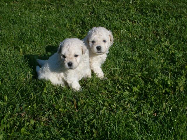 Обои Два щенка бернской пастушьей собаки играют на траве