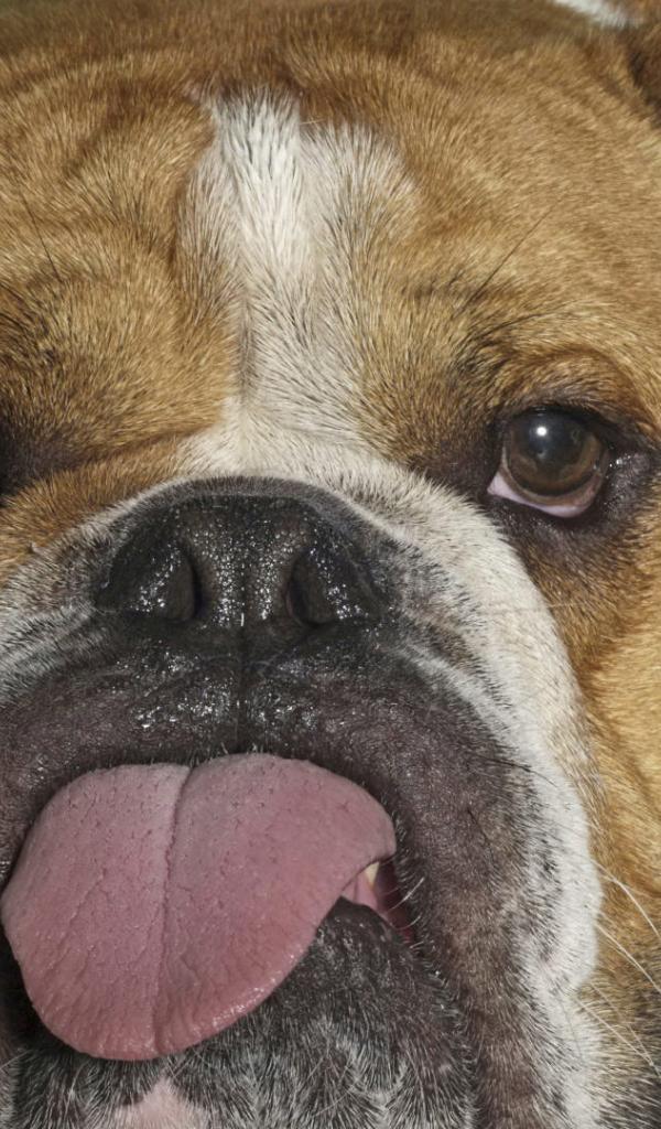 Обои Английский бульдог показывает язык
