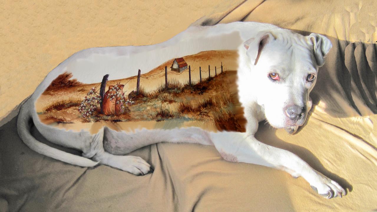 Обои Картина на спине американского стаффордширского терьера