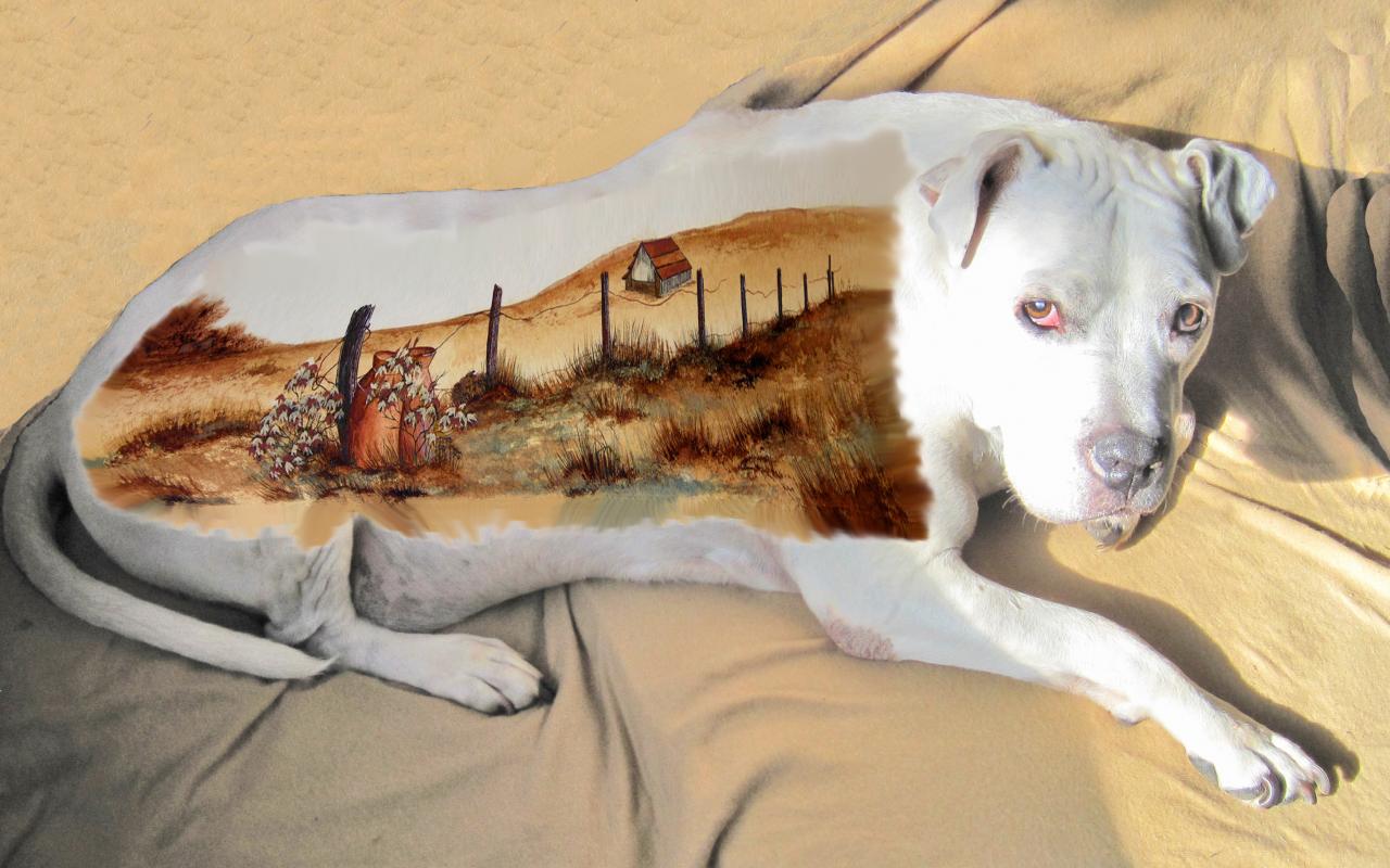 Обои Картина на спине американского стаффордширского терьера