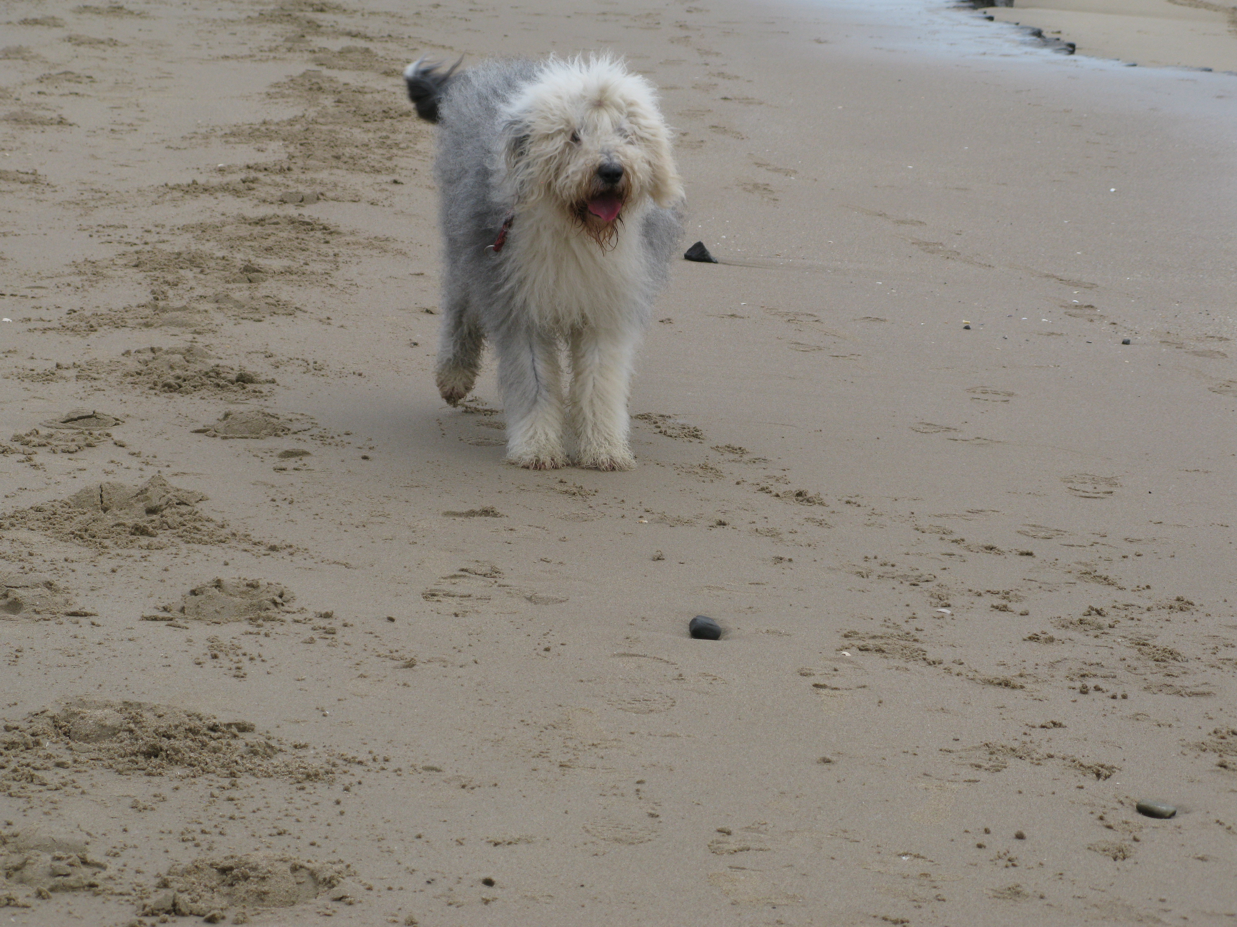 Обои Собака бобтейл на пляже