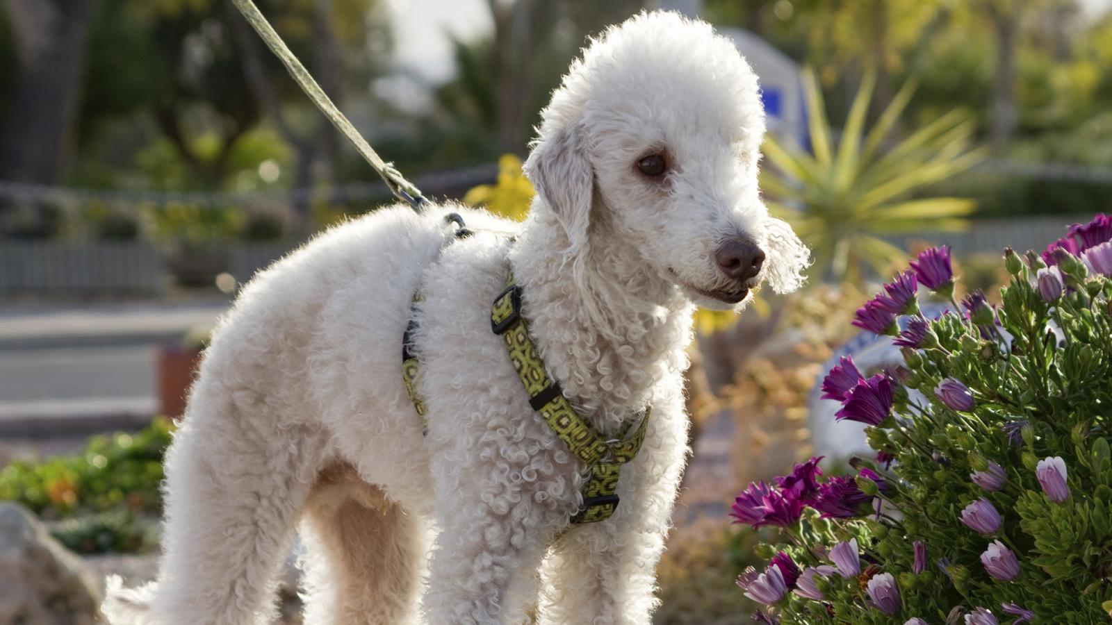 Обои Бедлингтон терьер в цветах