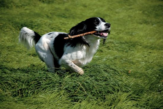 Обои Английский спрингер спаниель с палкой
