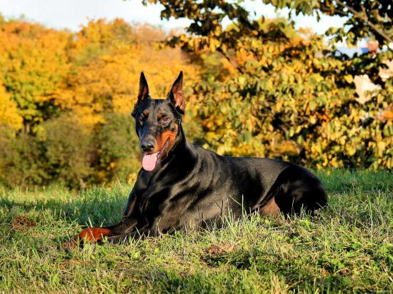 Обои Доберман на газоне