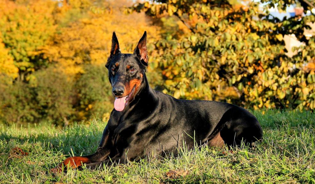 Обои Доберман на газоне