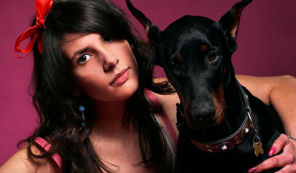 » Обои Девушка и доберман