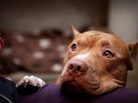 Обои Питбуль смотрит на хозяина