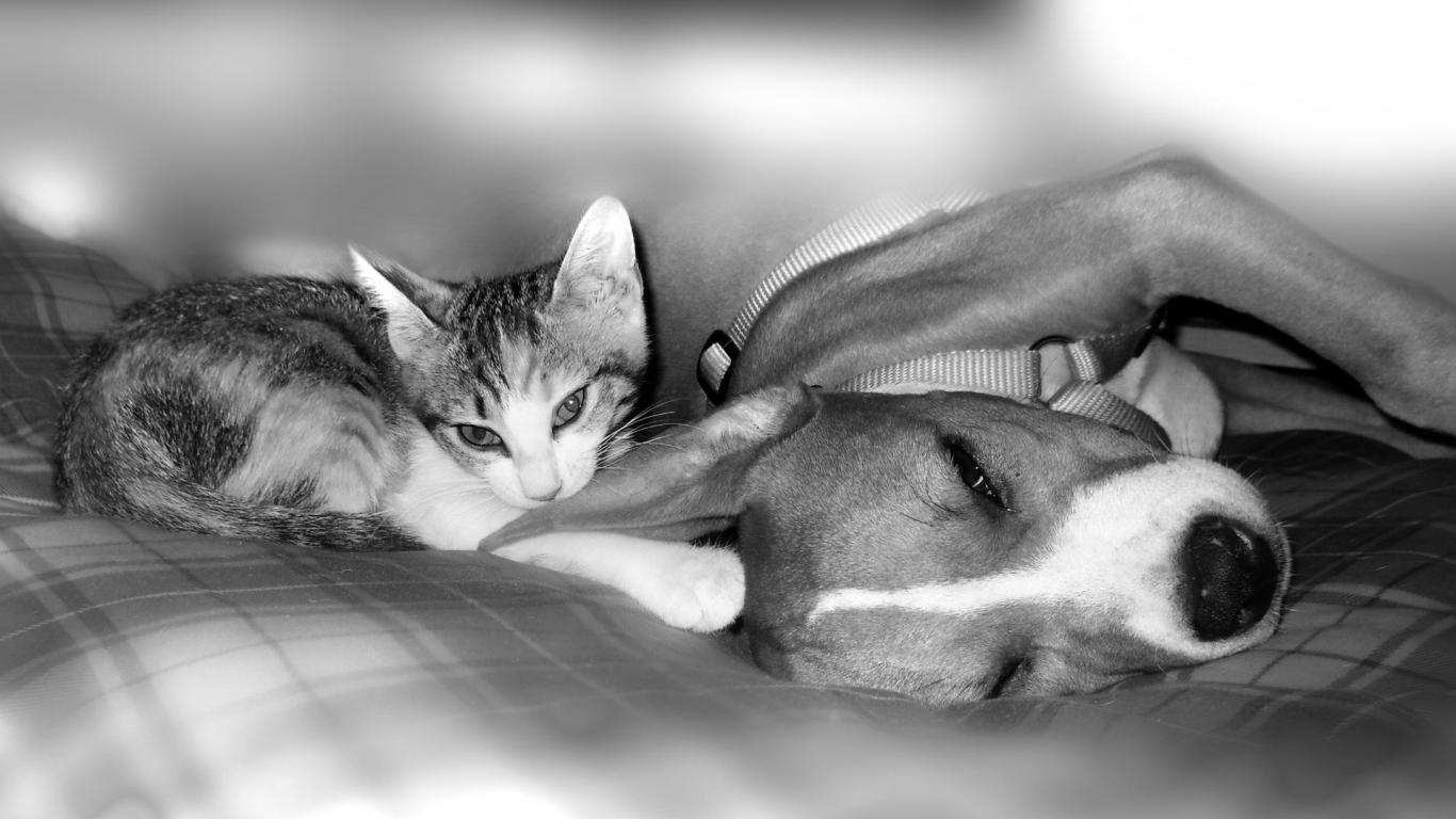 Обои Питбуль с котенком