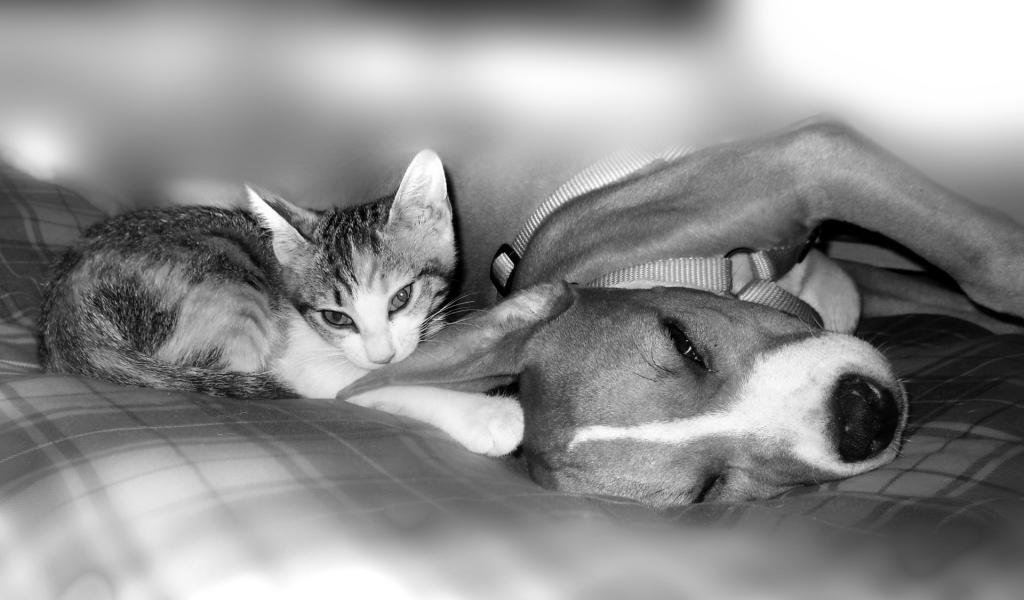 Обои Питбуль с котенком
