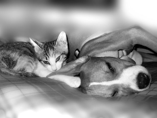 Обои Питбуль с котенком