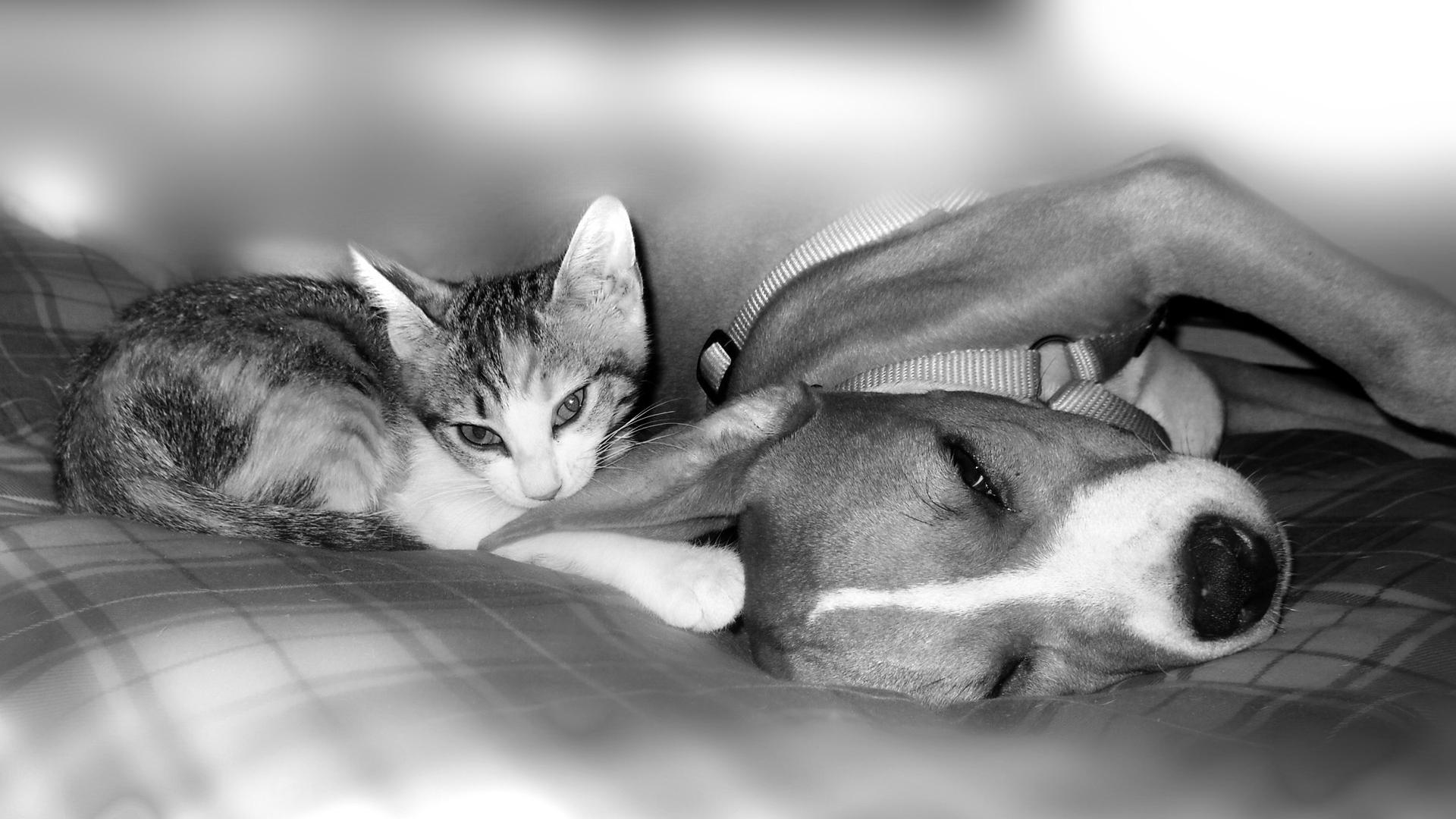 Обои Питбуль с котенком